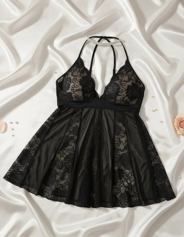 Descubre la fusión perfecta de comodidad y elegancia con nuestro Camisolin de Tull y Puntilla en talles grandes. Diseñado para realzar tus curvas, este baby doll de tul y encaje negro es la elección ideal para sentirte fabulosa.