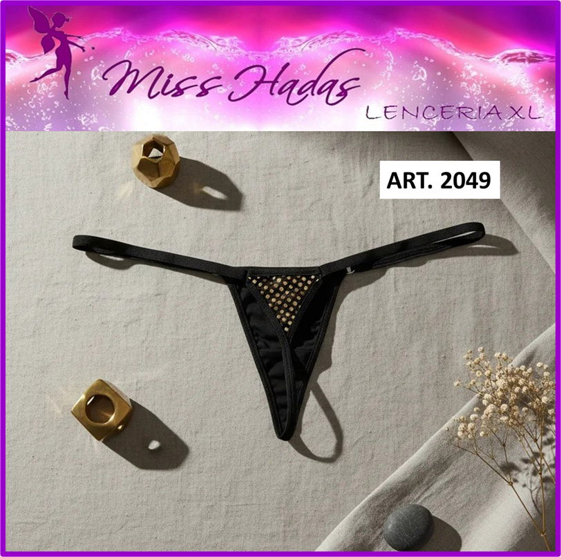 ART. 2049: Tanga de encaje Hilo Dental en lycra con detalles dorados