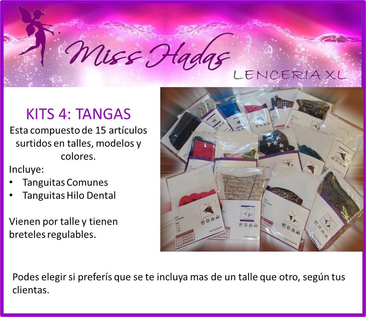 15 tanguitas surtidas en modelos, talles y colores.